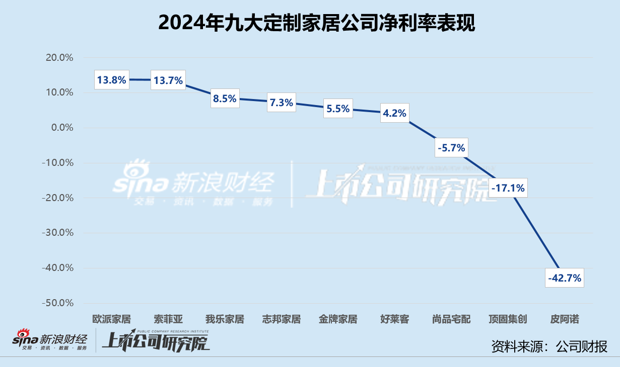 截至4月30日,欧派家居、索菲亚、志邦家居、尚品宅配、金牌家居、好莱客、我乐家居(维权)、顶固集创和皮阿诺9家A股上市的定制家居公司均已发布2024年业绩报告。