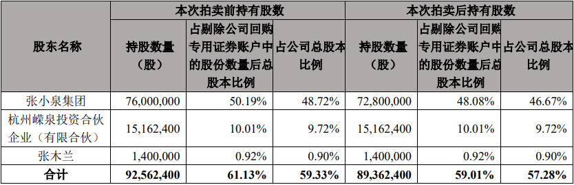 如前述司法拍卖股份最终全部过户完成,张小泉集团及其一致行动人本次司法拍卖前后持股情况变动如下: